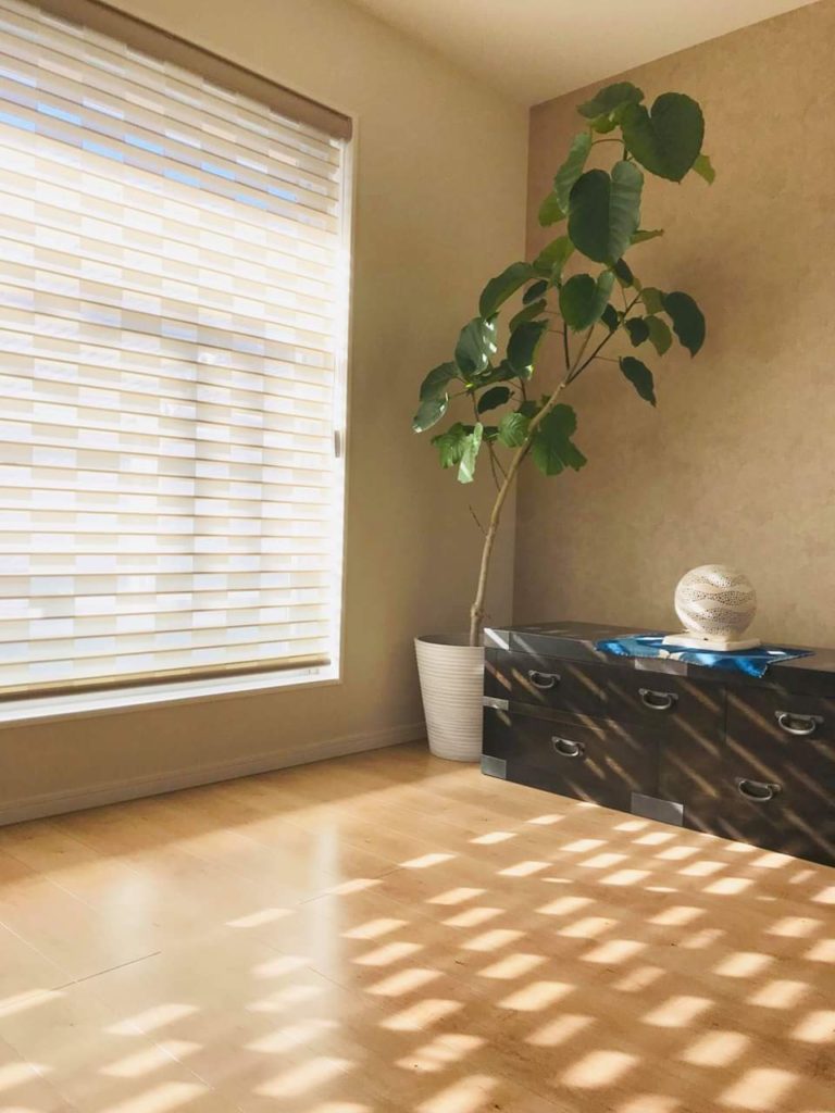 リビングにルーセントホームシェルシェードとFUGA