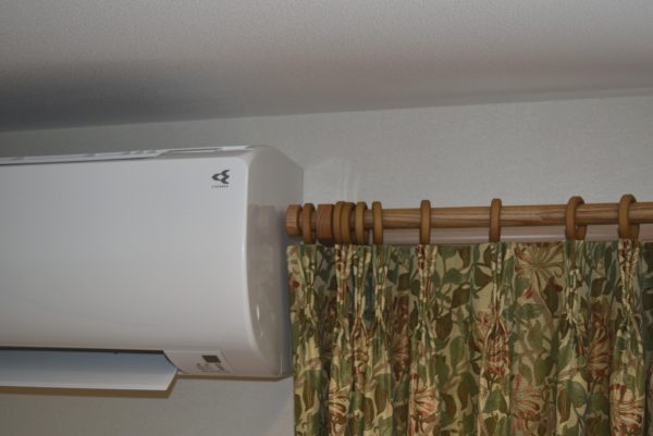 このレールは端のキャップが窓枠より出るデザインですが、窓のすぐ脇がエアコンや壁がある場合は