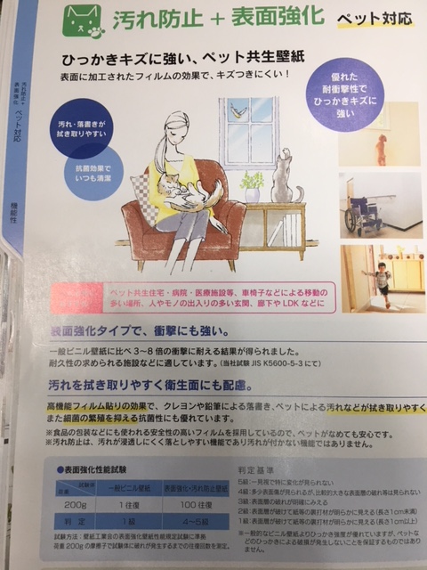 壁紙はトキワのもの。ペット対応の壁紙です。