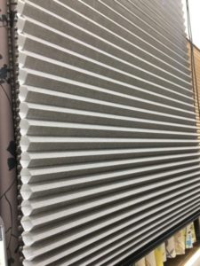 右側は新商品の桐のブラインド。天然木の味わい豊かなブラインドです。