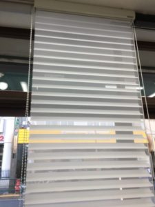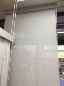 当店は西向きなので暑さが激しい夏場の午後にこのロールスクリーンを降ろすと、スッと涼しくなります。