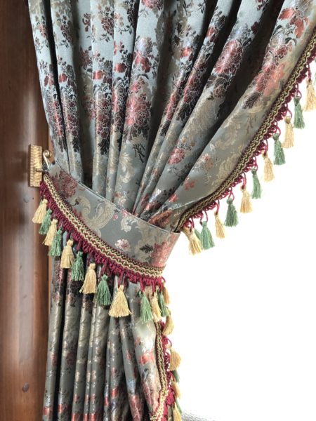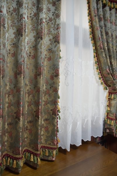 始めはカーテンの生地も無地を考えていましたが、お客様がお選びになったのはクラシックな植物柄。