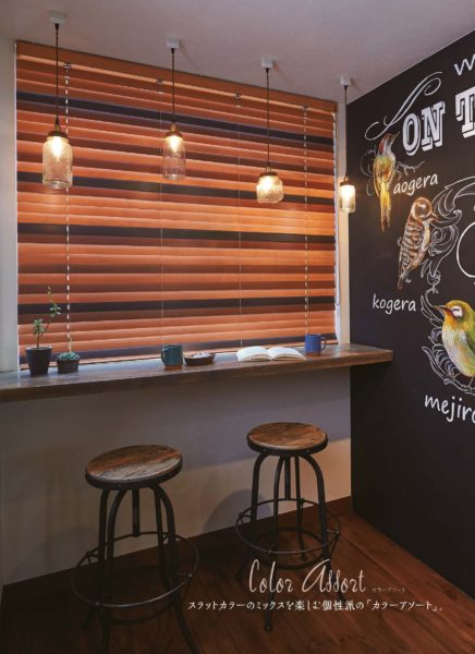 最近はウッドブラインドの塗装も少し古ぼけた感じのエイジング加工やビンテージ加工、つやつや感よりつや消しのマットな感じが流行っています。