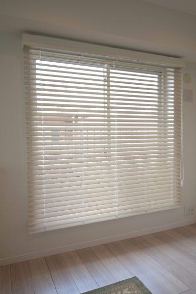 以前から使用していたシェードはかなり日差しを通すのです。「半年前に作ったカーテンと同じでも良いけど部屋全部同じものだと部屋がぼやける。」とのご意見もありましたので色々と検討した結果、今回はウッドブラインドをお取り付けすることとなりました。