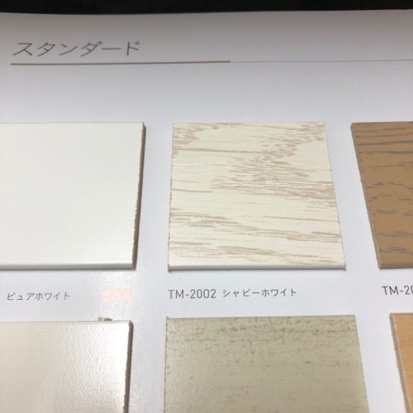 お客様がお選びになった色はシャビーホワイト。木目を生かしたホワイトの塗装です。