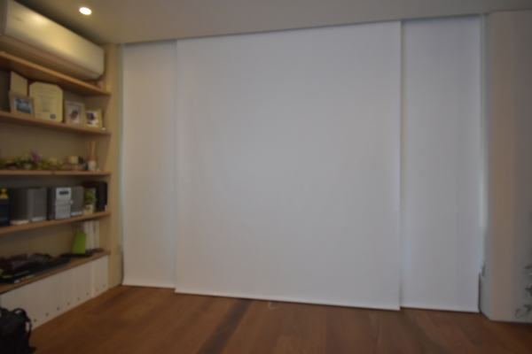 そこで窓に付けるロールスクリーンをプロジェクター用のスクリーンとして代用するという手があります。