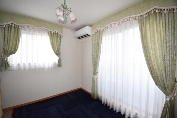 リビングは遠方のカーテン専門店でバランス付きの素敵なカーテンがお取り付けされておりましたが、「家の近くでもこのようなスタイルのカーテンを作ってくれるところがあると知ってびっくりしました。」とお客様はおっしゃっていました。