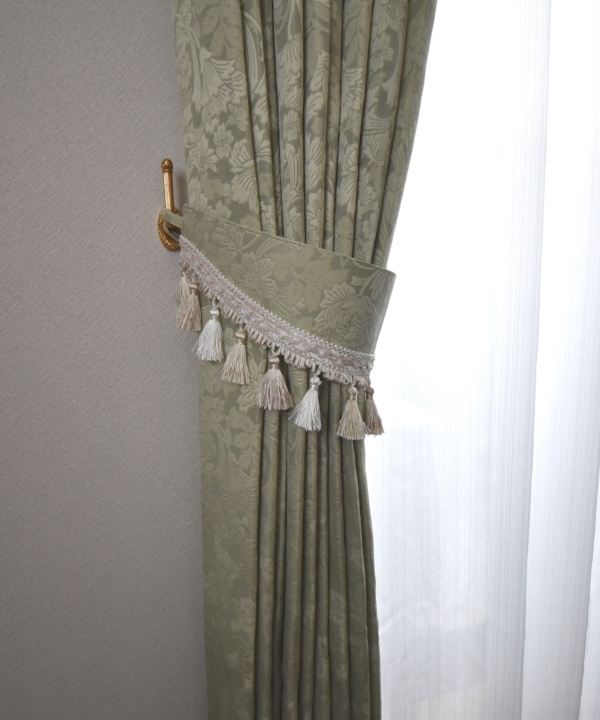 逆に自由なのが難しいです。どのくらいのサイズがバランスが良いのか?窓の巾によって形はどれがベストか?フリンジも何点か取り寄せてお客様に見て頂きます。