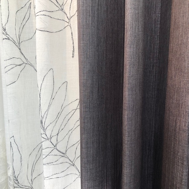 オーダーカーテン専門店なのでカーテンレールに吊った時に美しく見える生地にこだわって選んでいます。