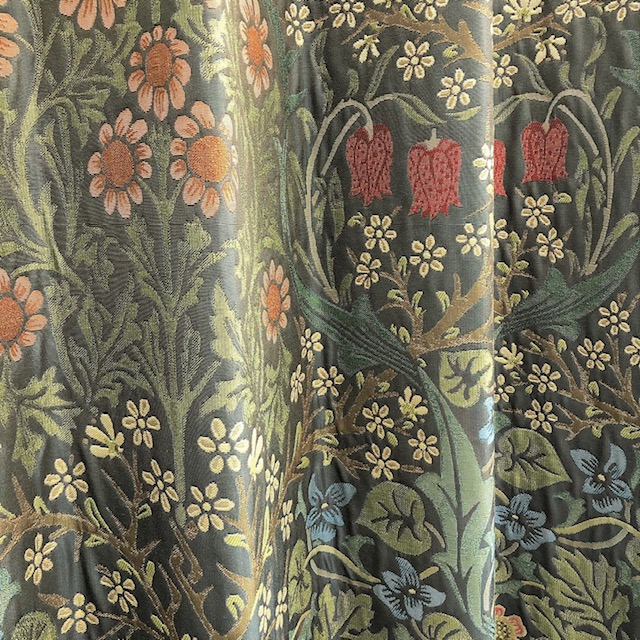 1887年に制作されたウィリアム・モリスの壁紙のデザインを織物にしました。自邸近くのテムズ川の土手の柳からアイデアを得て作られた柄で、柳の枝の流れと細長い柳の葉で全面が埋め尽くされています。